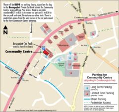 There will be free KCPA car parking clearly, signed on the day, in the Basepoint Private Car Park behind the Community Centre, accessed from Pine Grove. Park in any slots numbered B21 to B58 in the main car park or B1 to B20 in the car park exit road.